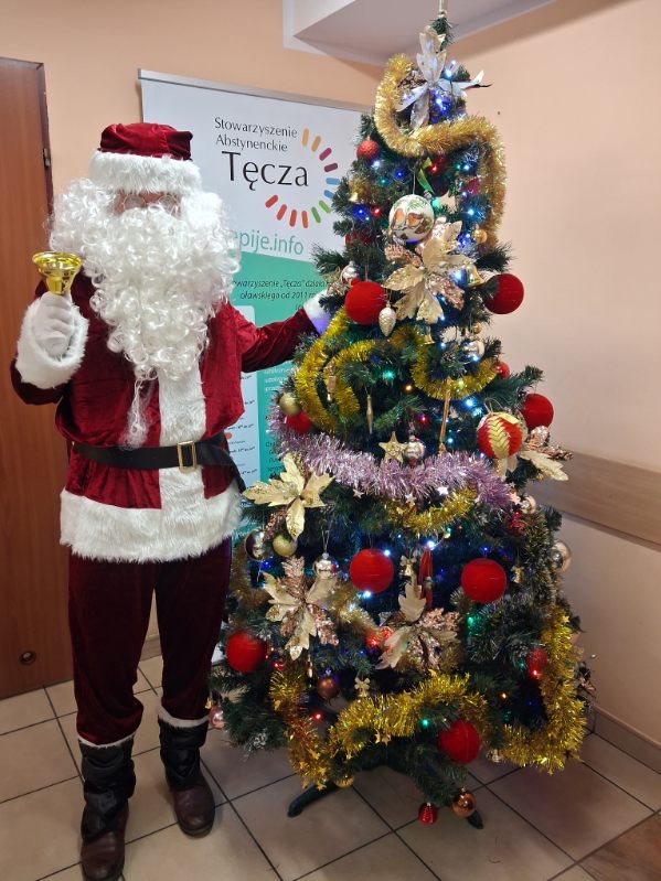 Nie zabrakło również wyjątkowego gościa – Świętego Mikołaja, który przybył z workiem pełnym prezentów. Uczestników powitał także Prezes Stowarzyszenia „Tęcza”, Pan Krzysztof, który złożył wszystkim świąteczne życzenia oraz osobiście przywitał Mikołaja, podkreślając znaczenie wspólnego świętowania i integracji społeczności.